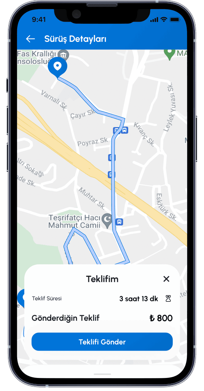 Tarafınıza ait Lokasyon Verileri Kanun’un 5/2 fıkrasının a ve c bentleri uyarınca Kanundan kaynaklanan işlemlerin yerine getirilmesi ve Sözleşmesel yükümlülüklerin ifası amacıyla işlenecektir. Bu kapsamda ilgili veriler, taşıma hizmetinin verilmesi kapsamında Müşteri ile iletişimin sağlanması ve gerekli bildirimlerin yapılması için uygulamanın kullanıldığı sırada mevcut konumunuzu ilişkin lokasyon bilgileri işlenecektir.