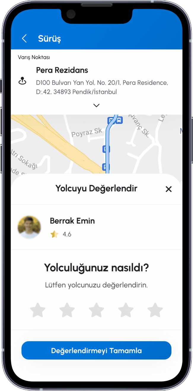 Uygulama kullanımınız kapsamında vermiş olduğunuz taşıma hizmetleri üzerinden elde edilen adres bilgileri, yolculuk süresi bilgisi, hizmet ödeme şekli bilgisi, tarafınıza ilişkin uygulama üzerinden yapılan puanlama ve yorumlar Kanun’un 5/2 fıkrasının f bendi uyarınca Şirketin teknik, idari ve ticari risklerinin yönetilmesi ve azaltılması amaçlarıyla Şirket’in meşru menfaati kapsamında işlenecektir.