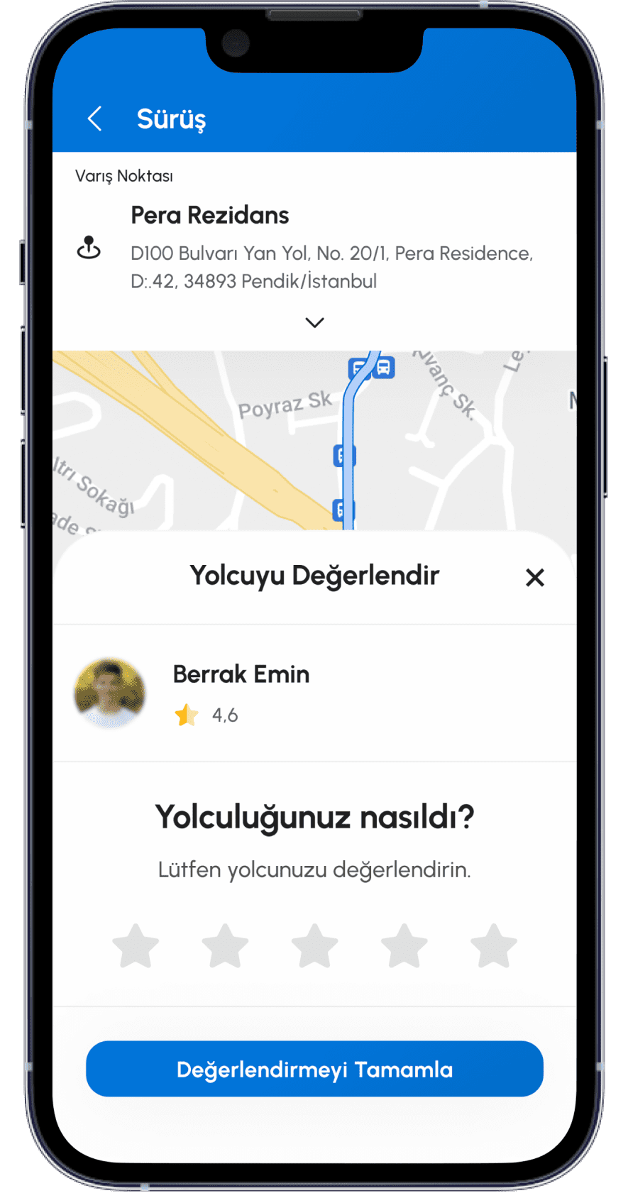 Uygulama kullanımınız kapsamında yapmış olduğunuz yolculuklar üzerinden elde edilen adres bilgileri, yolculuk süresi bilgisi, hizmet ödeme şekli bilgisi, tarafınıza ilişkin uygulama üzerinden yapılan puanlama ve yorumlar Kanun’un 5/2 fıkrasının f bendi uyarınca Şirketin teknik, idari ve ticari risklerinin yönetilmesi ve azaltılması amaçlarıyla Şirket’in meşru menfaati kapsamında işlenecektir.